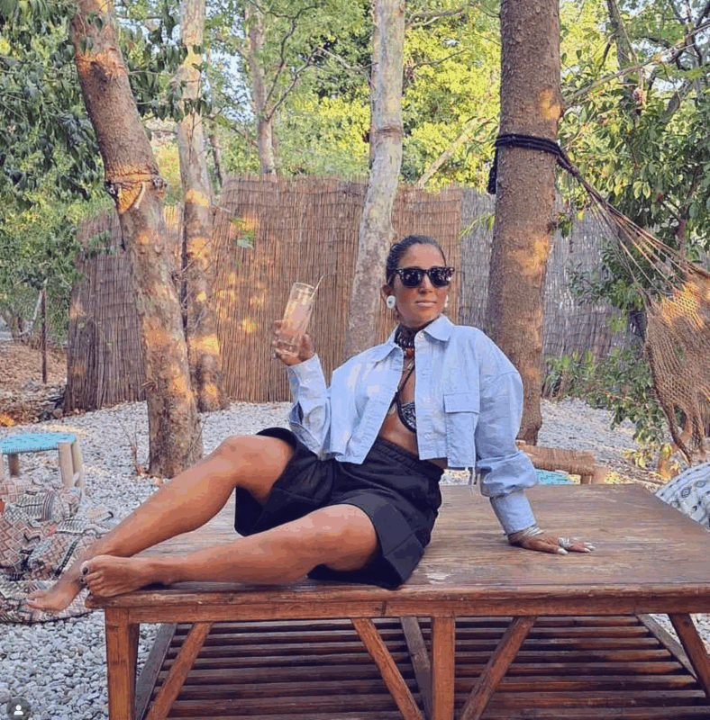 Είμαι η ‘Ελενα και βρίσκομαι σε ένα κρυφό beach bar μέσα στα δέντρα, ξυπόλητη πάνω σε ένα ξύλινο τραπέζι, με ένα κοκτέιλ στο χέρι και ένα καλοκαιρινό ντύσιμο με μια βερμούδα και ένα τσόκερ που με κάνει να νιώθω ελεύθερη.