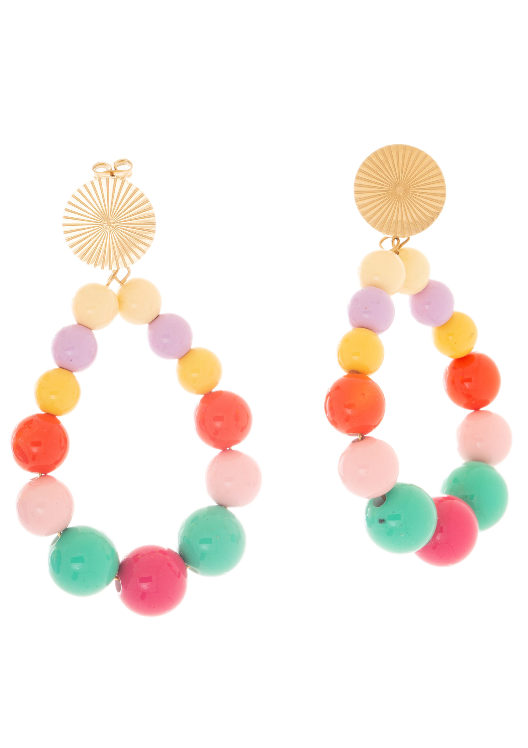 Ένα όμορφο ζευγάρι σκουλαρίκια κρίκοι που ξεχωρίζουν για τις υπέροχες πολύχρωμες χάντρες τους και το χρυσό στοιχείο τους.