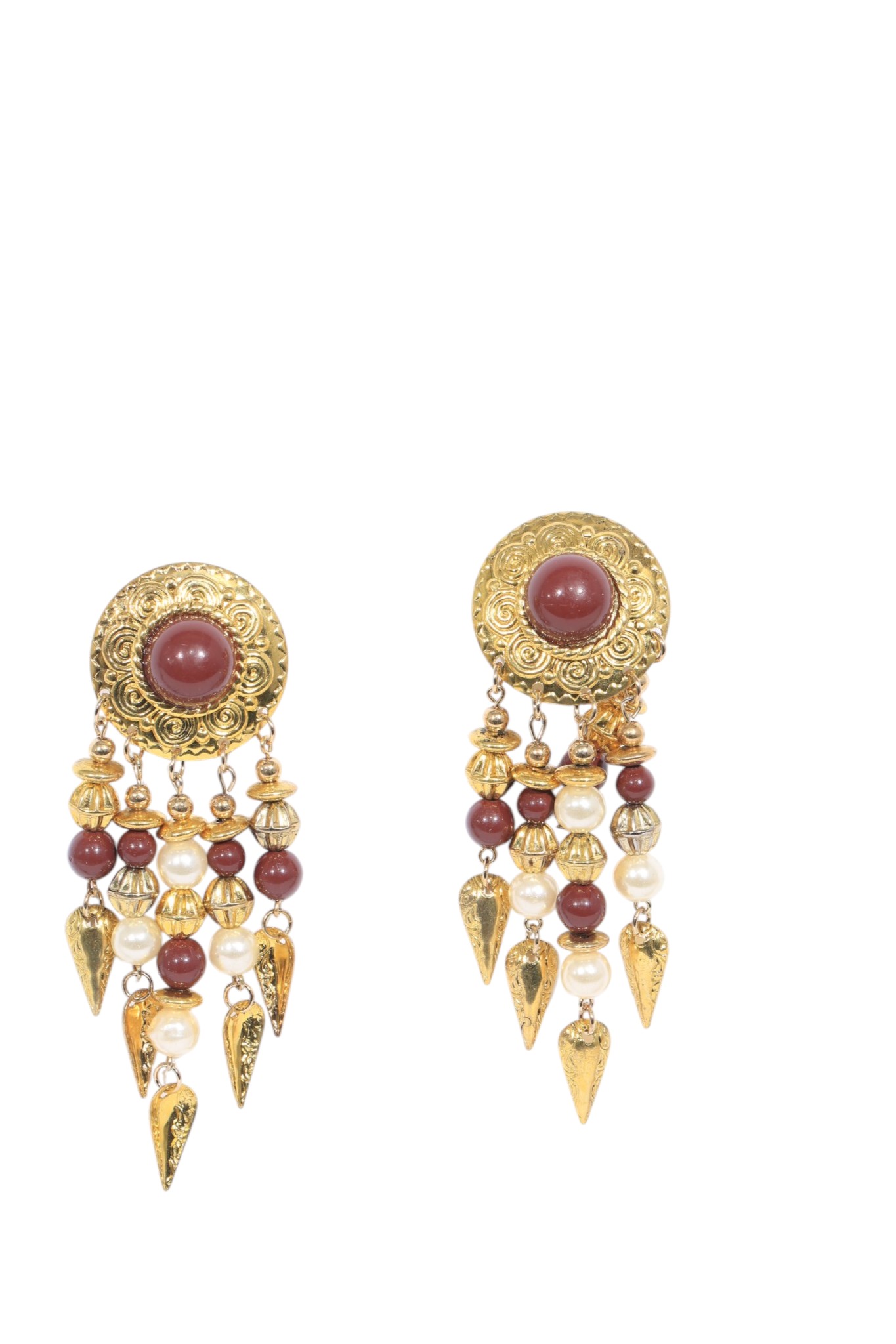 Εντυπωσιακά κρεμαστά σκουλαρίκια με μεταλλική βάση, χάντρες και πέρλα. Κινείται όμορφα στο φως και δίνει premium boho ύφος.