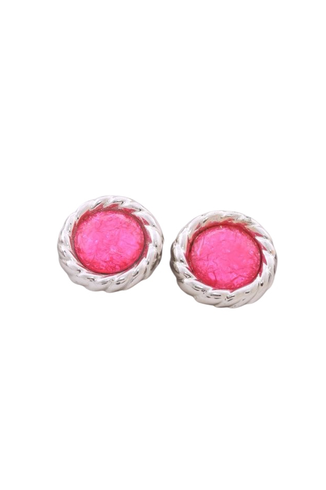 Τα σκουλαρίκια stud φούξια δίνουν ζωηρό χρώμα και θηλυκή πινελιά στα looks σας. Η ασημί βάση αγκαλιάζει τη φωτεινή κεντρική πέτρα και δημιουργεί ένα κομψό αποτέλεσμα που φοριέται εύκολα όλη μέρα.