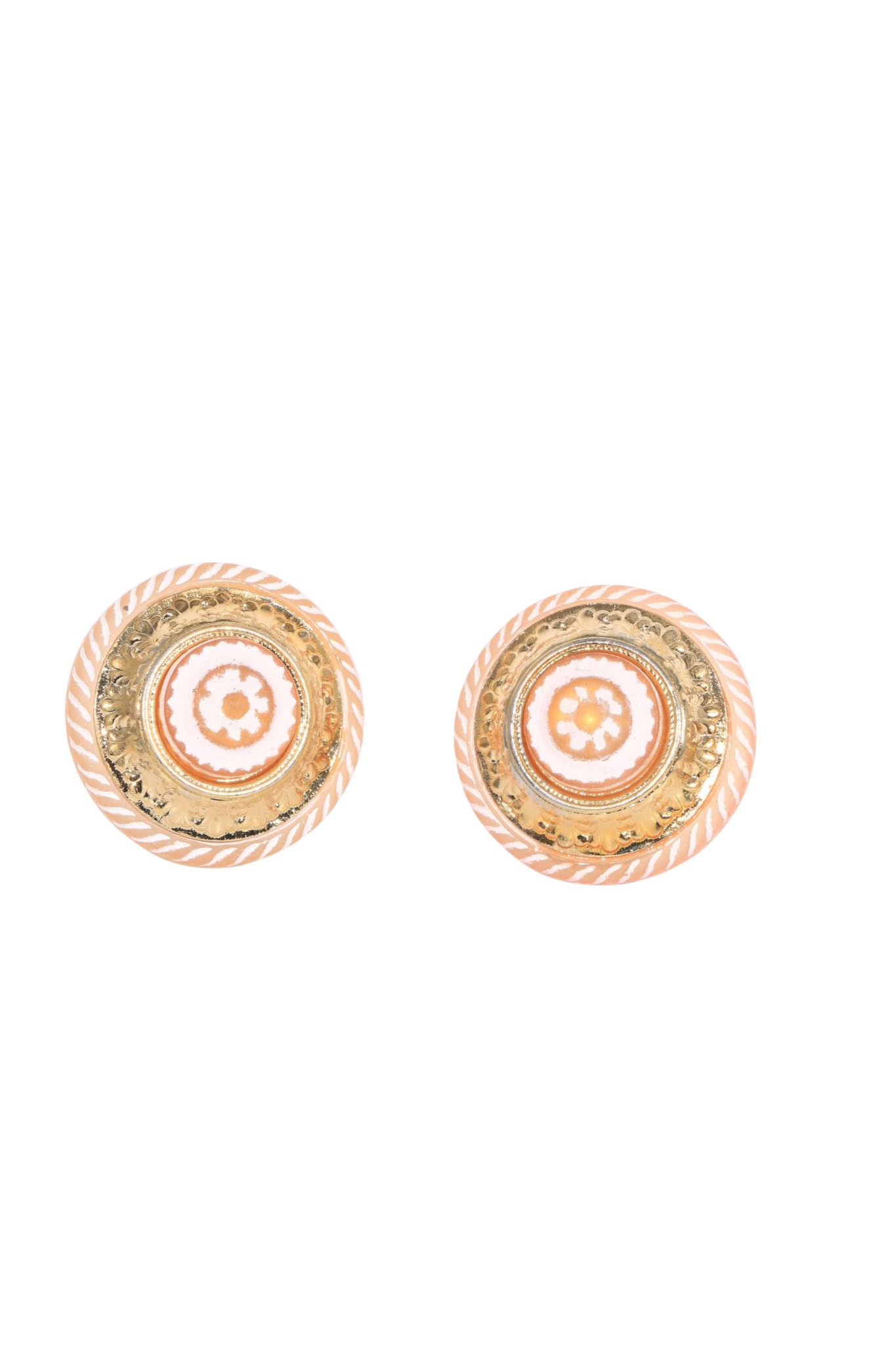 Σκουλαρίκια stud με medallion σε peach τόνους και χρυσό πλαίσιο. Διακριτικά, ζεστά και ιδιαίτερα, ιδανικά για καθημερινό chic και ρομαντικά looks.